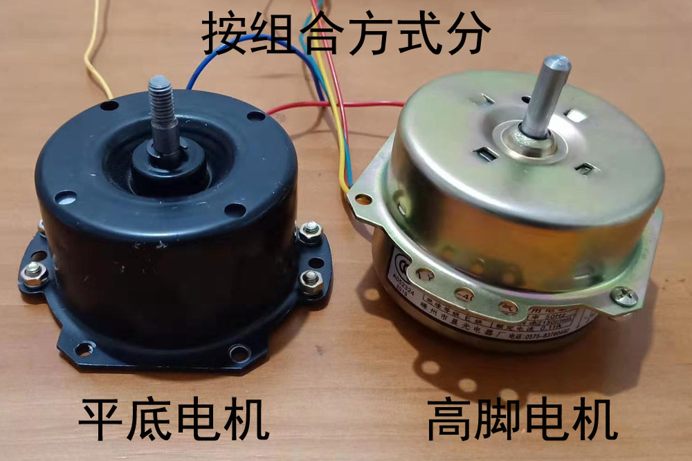 平底电机,优点:质量稳定,技术成熟,一般用于超薄浴霸箱体,减少箱体厚度;缺点:相对高脚电机,成本高出3-5元。 两组电机图片如下图: